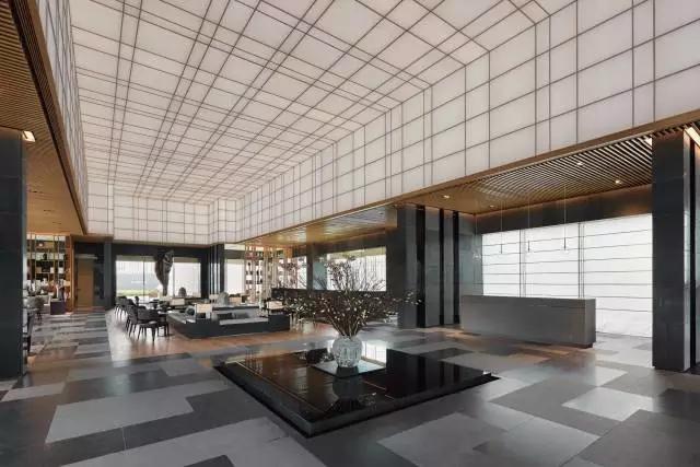借由東方園林式的假山,打造出“未若柳絮因風(fēng)起”的雪景,美如水墨畫、細(xì)膩至極。這與圍繞式洽談方式布置相結(jié)合,巧妙處理好空間形態(tài)和陳設(shè)之間的關(guān)系。大尺度挑高設(shè)計(jì),加上頂部有序交互的線條,讓空間極具延展性,通透敞亮的照明效果搭配藝術(shù)性燈光點(diǎn)綴,使整體氛圍更顯大氣與品位。該空間通過主體、功能位置、通透的序列式的立面關(guān)系,自然分割空間視線,同時(shí)又實(shí)現(xiàn)了將光線引入到室內(nèi)的最大化。