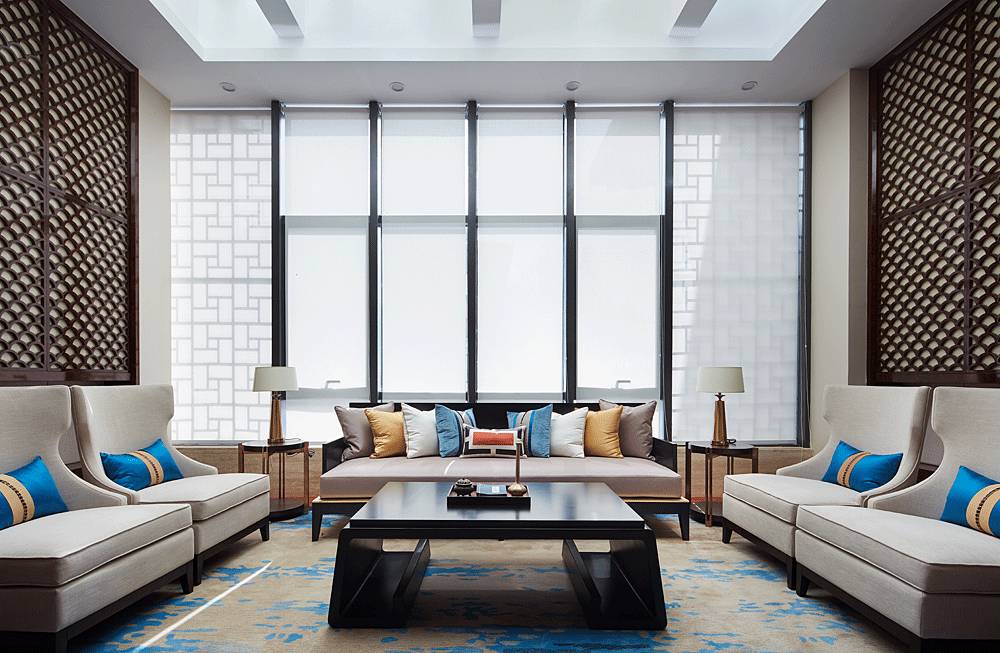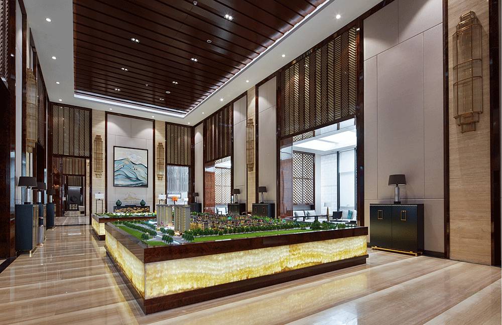 沙盤區(qū)采用簡單、大氣的設(shè)計(jì)手法,沒有濃墨重彩的奢華場(chǎng)景,更多的是將歷史古都的韻味帶到細(xì)節(jié)中,如格柵、窗欞、黛青色擺件、意境掛畫等東方元素都透露著古韻,并融入大理石、玻璃、燈帶等現(xiàn)代材料,在營造意境的同時(shí)兼顧場(chǎng)所的使用功能。