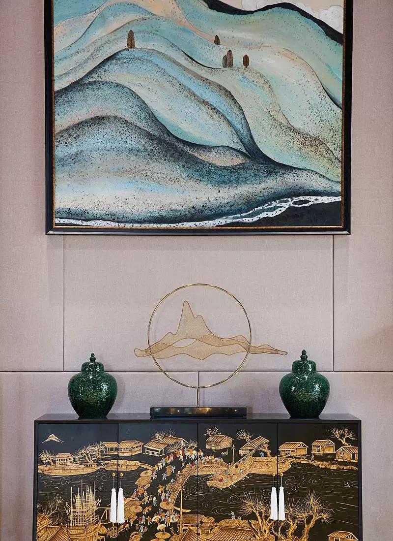 “湖光山色”項(xiàng)目位于西安歷史遺址觀光帶上,毗鄰鎬京遺址公園與斗門水庫,四周環(huán)境怡然靜雅,歷史文化氣息濃厚,近期其營銷中心已完工,軟裝設(shè)計(jì)交由深圳印象空間呈現(xiàn)。結(jié)合周圍環(huán)境及甲方需求,印象空間最終將西安古都情懷融于作品中,于細(xì)微之處傳遞意境之美。