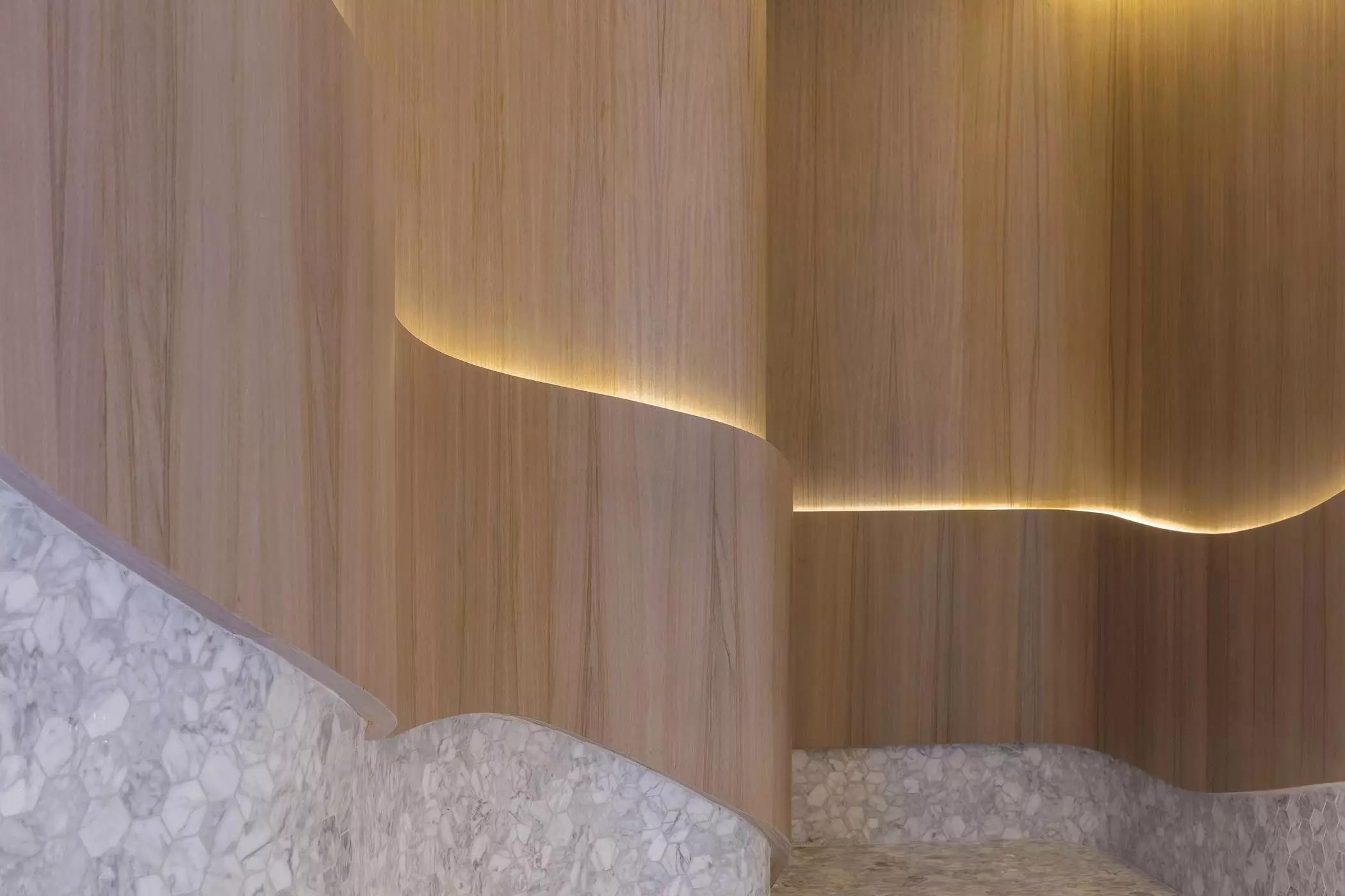 波浪起伏的輪廓舒適宜人,以材質(zhì)和色彩轉(zhuǎn)換空間的調(diào)性,薈萃最恬適的元素塑造循序漸進(jìn)的氛圍體驗,猶如憩時份花園回廊,緩和心靈才能得以配合各種療程。