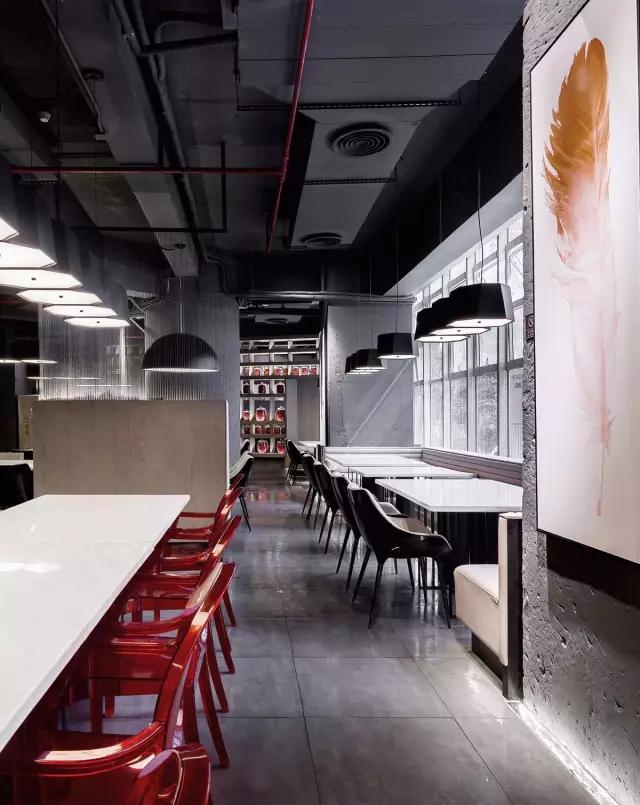 設(shè)計師的初心是以最少的項目預(yù)算,發(fā)揮此案項目最極致的藝術(shù)空間設(shè)計體驗。對成本的嚴(yán)格把控,給自己在設(shè)計與施工過程中施加壓力與難度,對材料及工藝的優(yōu)化成為了主案設(shè)計師不斷反復(fù)思考的問題。設(shè)計師決定保留空間原始的承重墻、柱子,解決傳統(tǒng)設(shè)計里的平面功能布局,除此之外對空間分布,區(qū)域劃分增加更多體驗感和現(xiàn)代藝術(shù)文化感受,讓來訪的食客,一步一個驚喜,動線流暢。設(shè)計除了營造合理用餐和聚會的優(yōu)雅環(huán)境,還通過精心的平面布置、空間規(guī)劃以及摩登藝術(shù)軟裝陳設(shè),使空間充滿時尚的藝術(shù)氛圍。當(dāng)然主筆設(shè)計師的重點還是不斷考慮食客的用餐體驗感及把產(chǎn)值比和支出比算準(zhǔn)、要有視覺效果和很舒服的空間感受,能源消耗要最低化,后勤動線和客人動線要明了。