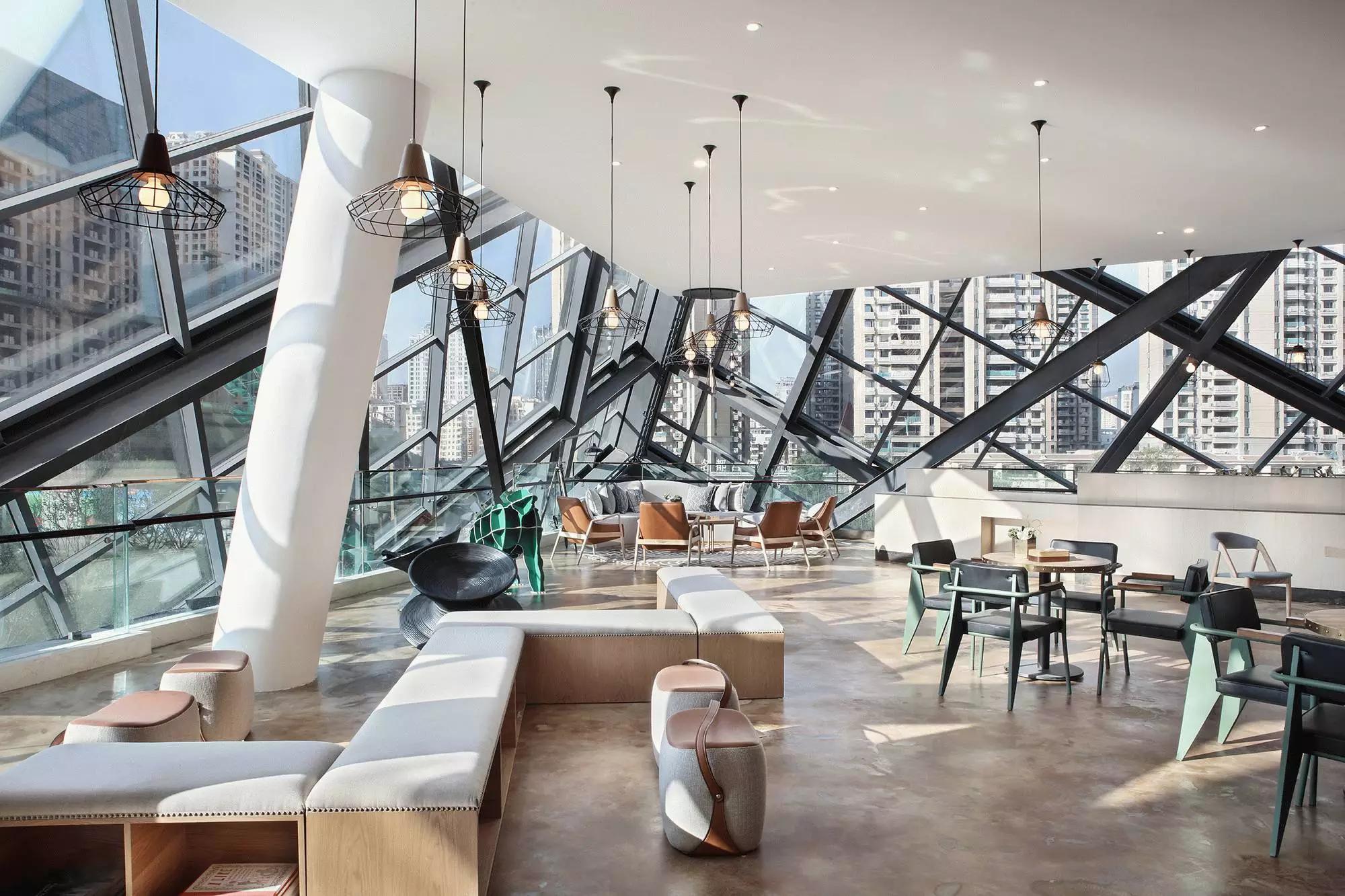 項(xiàng)目原屬昆明聯(lián)想科技城,后由融創(chuàng)地產(chǎn)接盤(pán),他們希望將該建筑打造成為集辦公、商業(yè)、展示等多元化為一體的空間,并使其成為昆明新的城市地標(biāo)建筑。接手本案的主創(chuàng)設(shè)計(jì)師是默存設(shè)計(jì)的季青濤,作為具有建筑師背景的主創(chuàng)設(shè)計(jì)師,從建筑空間的思維從事空間設(shè)計(jì)便成為一種必然。在原有“盒子”空間的內(nèi)部,設(shè)計(jì)師以木結(jié)構(gòu)對(duì)空間進(jìn)行了重組和分割。